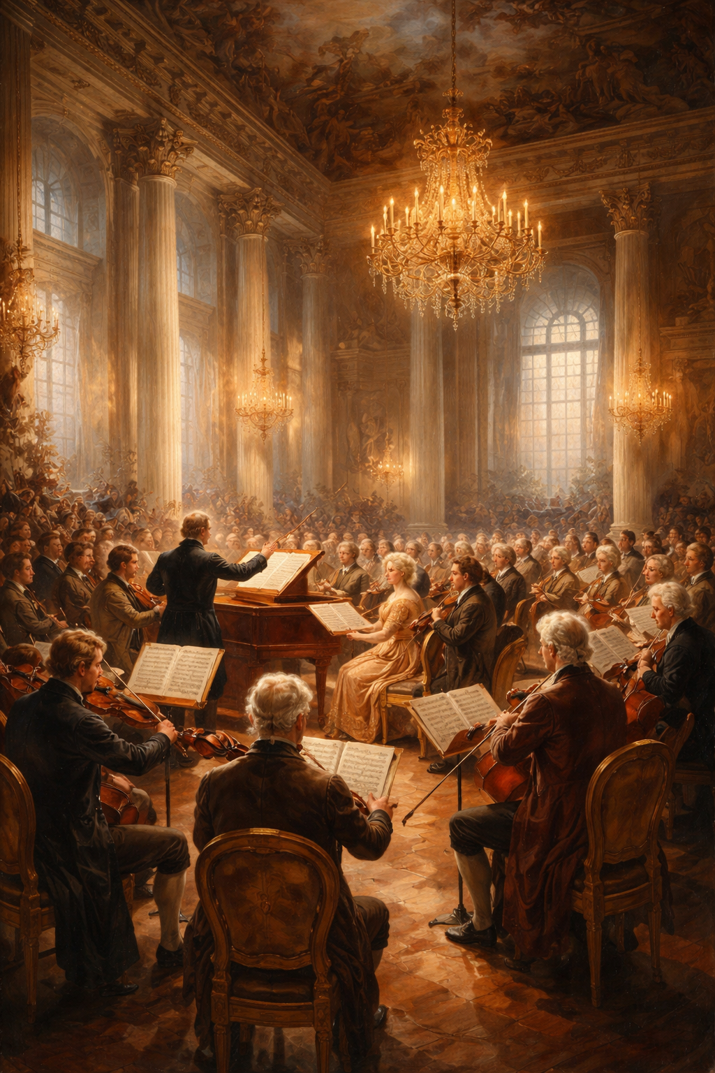 ئەم قۆناغە فۆڕمی موزیکی گەورەی وەک سەمفۆنیا، سۆناتا، چوارینەی ژێدار و کۆنشێرتۆی گەیاندە ترۆپک. دەربڕینەکان لە موزیکدا سرووشتی بوون و دانەران، لە قاڵب و فۆڕمەکانی قۆناغی باڕۆکەوە بەرەو قۆناغێکی نوێ و گەشەپێدانی یاخود تێکشکاندنی ڕێچکە کۆنەکان هەنگاویان دەنا.