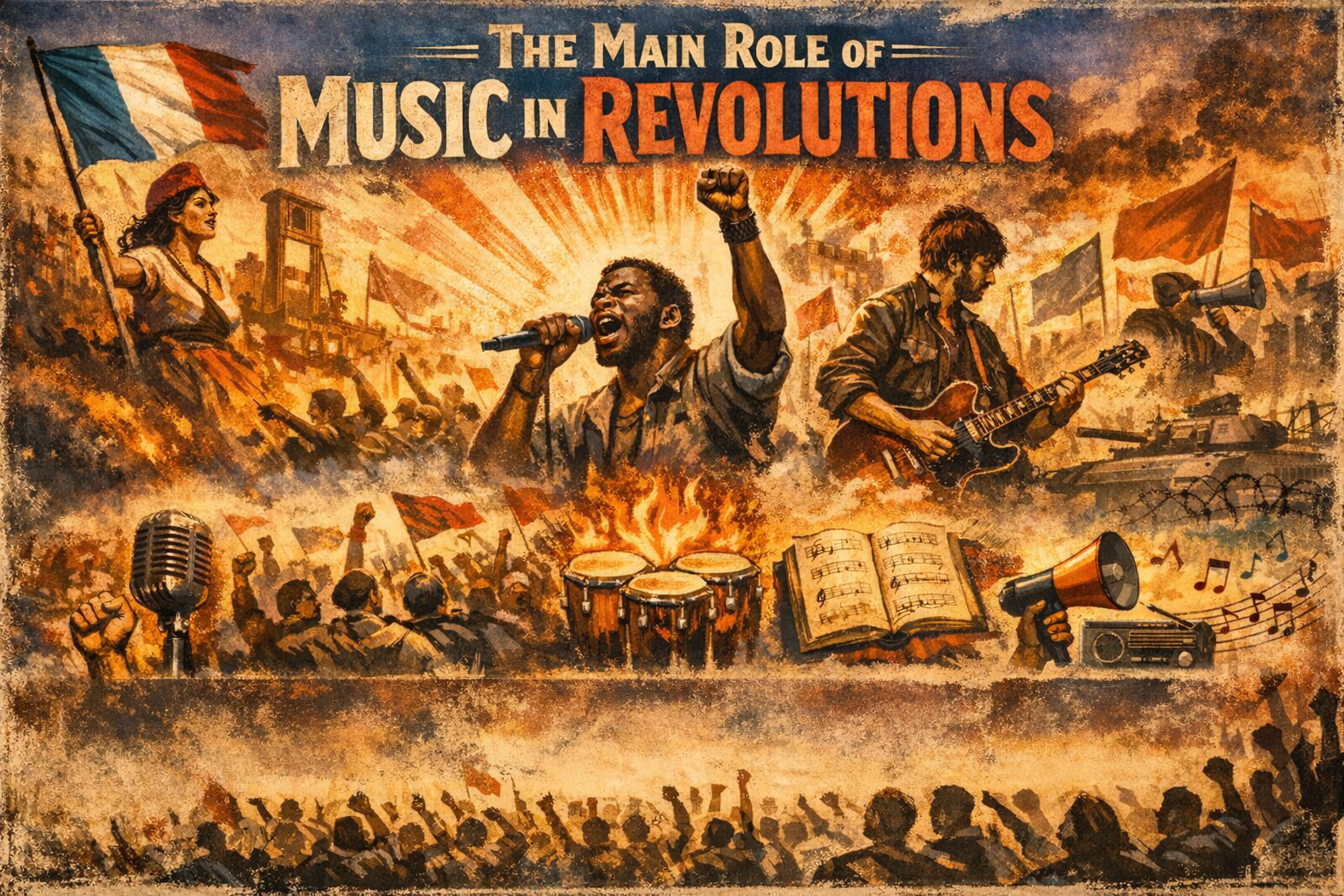 بەدرێژایی مێژوو هەرگیز موزیک تەنها بۆ کاتبەسەربردن نەبووە. هێزێکی گەورە بووە کە توانای داڕشتنەوەی عەقڵەکان و یەکخستنی مرۆڤەکان و بزوێنەری گۆڕانکاری کۆمەڵایەتیی بووە. لە سروودە کۆنەکانەوە تا گۆرانییە شۆڕشگێڕییە مۆدێرنەکان، موزیک هەمیشە ڕۆڵێکی سەرەکی لە شۆڕشەکاندا گێڕاوە. گڕ و تینی بزووتنەوەکان، دەرخەری ناڕەزایەتییەکان و پەروەردەکاری هاودەنگی و یەکڕیزی بووە لەنێو ئەوانەی بەدوای گۆڕانکاریدا دەگەڕێن و بەرخۆدان دەکەن.